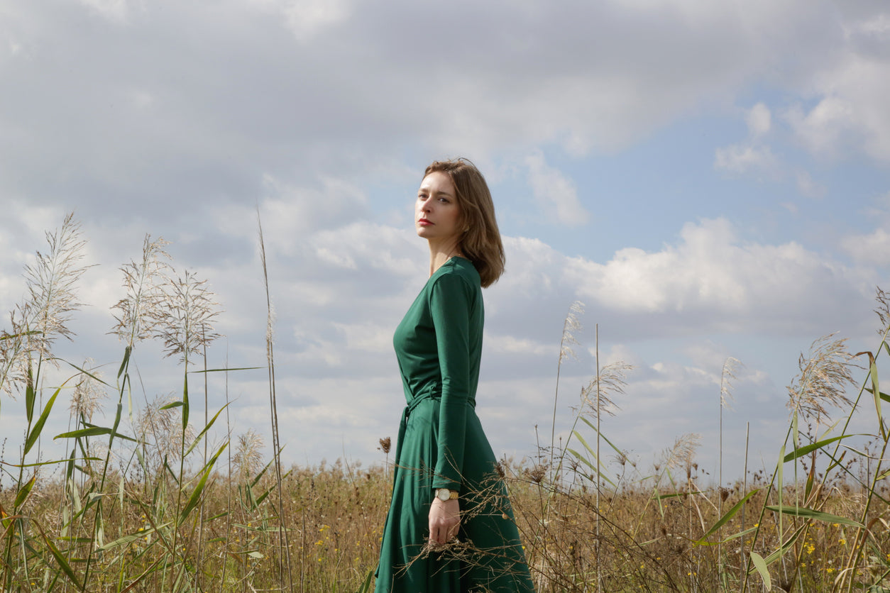 Kelly Green Knee Length Wrap Dress